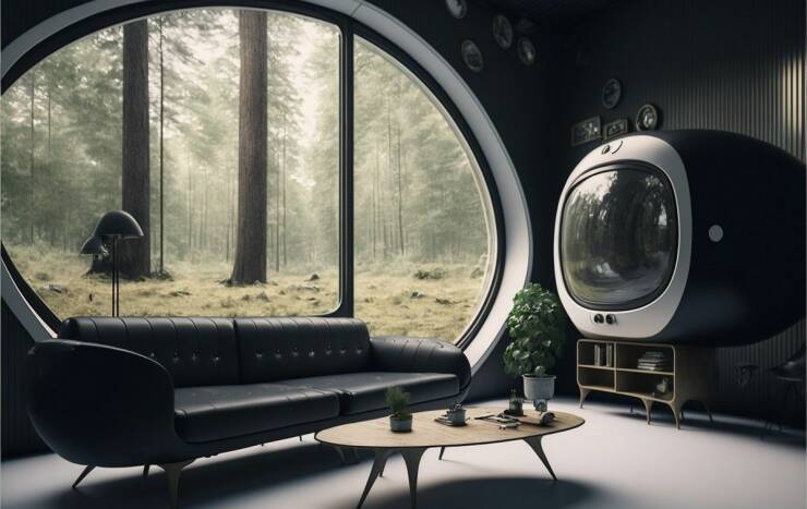 森の中にある丸っこい窓の家、部屋