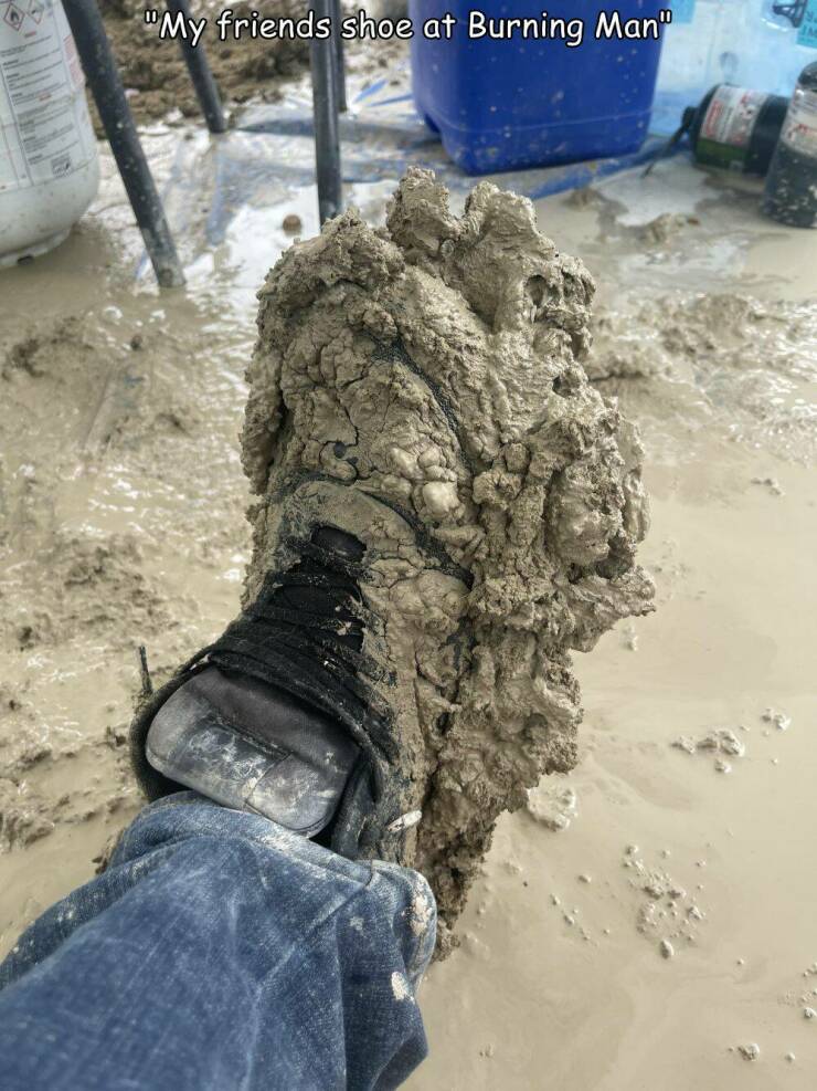 バーニングマンに行った友人の靴…。