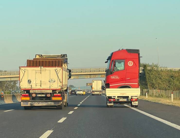 トラックの頭をトラックの荷台で運ぶとこんな感じ。