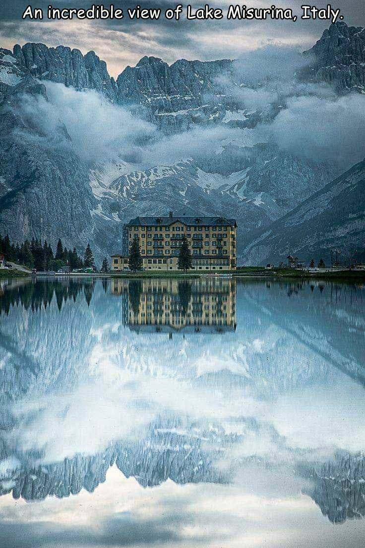 イタリア、ミスリーナにあるお城と湖の風景