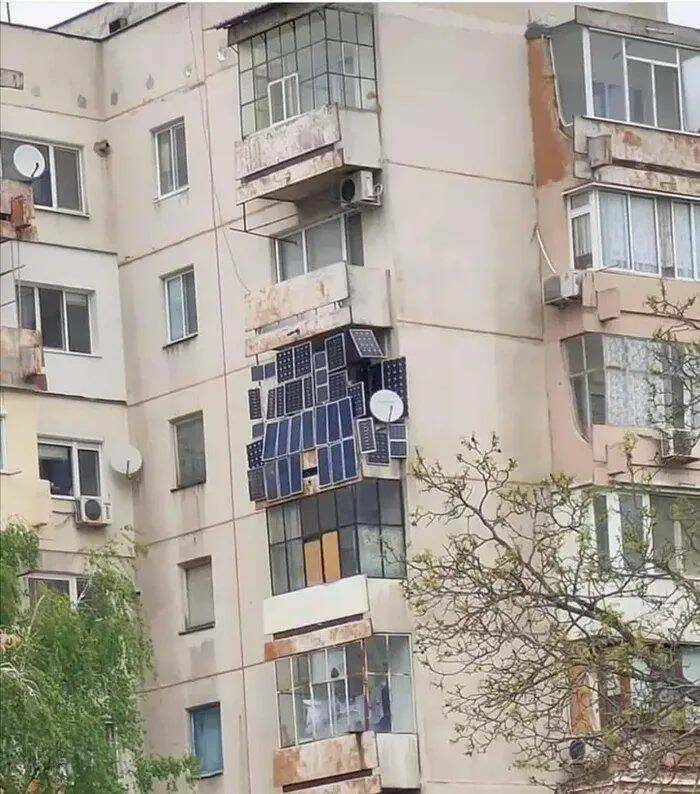 窓にソーラーパネルを貼りまくったせいで…、